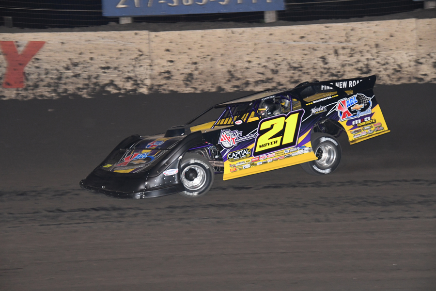 Billy Moyer in a MARS Racing Series battle at Farmer City (IL) Raceway in September 2020 - Todd Healy Photo